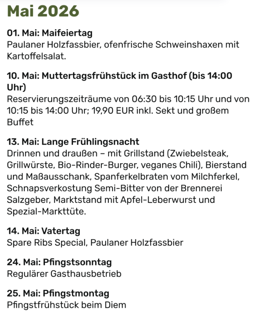 Ich war des Öfteren schon sowohl privat wie auch geschäftlich im Gasthaus Diem.