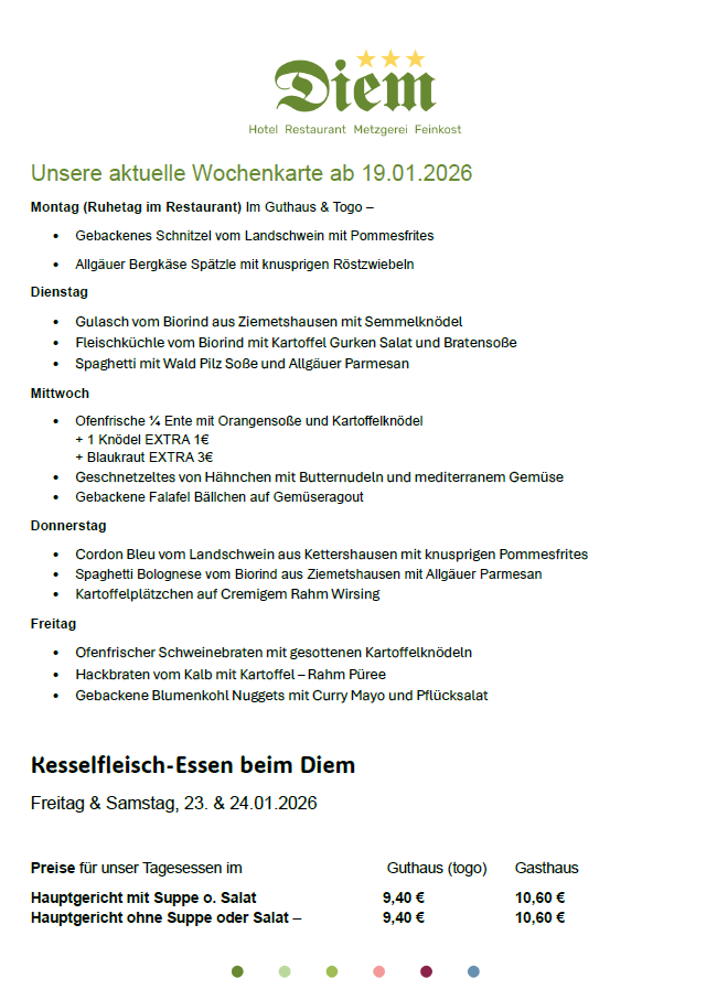 Jetzt zu unserem Wochenkarte Newsletter anmelden